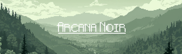Arcana Noir is an illustrated text-based Rogue-lite RPG using a D100 system, resource management, and decision trees inspired by adventure games and interactive fiction.