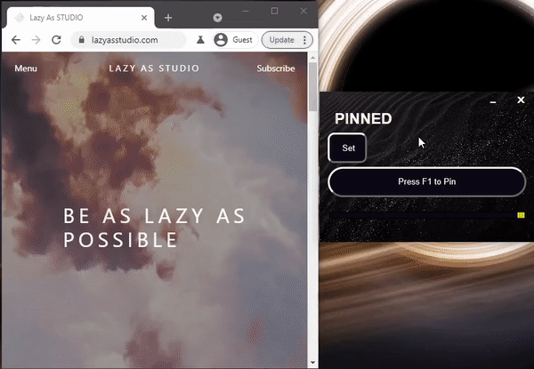 Pinned is a simple and easy-to-use application that allows users to pin any window, an essential function that can boost usability and productivity; it can now also turn the pinned window into an overlay. Anyone with one monitor should find this tool useful.
