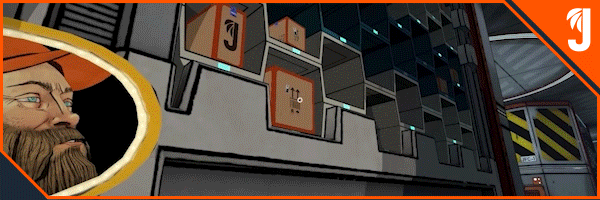 Aboard his corporate issued flying JünglePod and armed with his multi-purpose JüngleGun, Kurt dispatches countless products from a fulfilment centre the size of the sunken city of Manhattan.