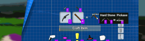 A Pickaxe is made by first crafting a Pickaxe Head and a Tool Handle. Press E or (Back) to open the Crafting Menu