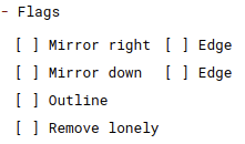 Many settings affect how these pixels behave, see more under Flags, Shading, Noise and Palette