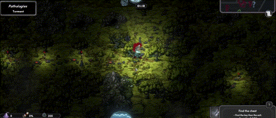 Exploration. Steer Thyria on a procedurally generated 2D isometric map with varied landscapes. Various places offer exchanges, gifts… but also deception and fights! Maintain an inventory of relics that can optimize (or reduce…) the end of quest rewards. Face the living nightmares on the map using Thyria's arsenal, which will expand as the adventure unfolds. Always keep an eye on the clock to best manage the day / night cycles, the visibility and behavior of nightmares being greatly impacted!