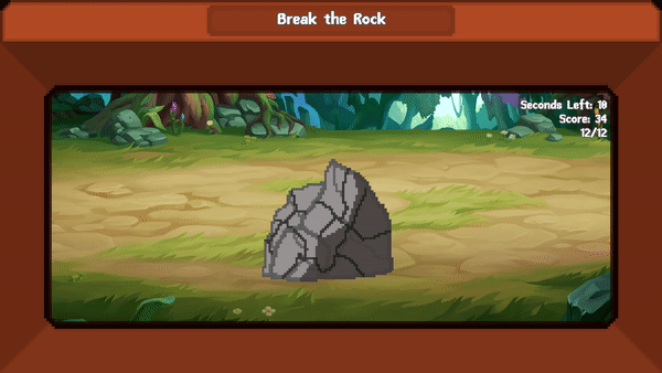 Spam the action button in order to do damage and eventually break the rock, the more rocks you break the bigger the increase to your party's base HP, Attack and Defense stats.