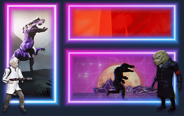 With three of humanity’s worst villains sharing one giant dinosaur body, you’ll need the best our species can muster to even the odds. Call up heroes from the dawn of history like Julius Caesar (et tu, Reptiles?), medieval masters of war, like Robin Hood (take from the rich, shoot arrows at dinosaurs) and great minds of super-science like Albert Einstein - all things are relative, but we’re kicking the reptiles out of this family gathering!