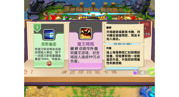 Random cardAfter each turn of successfully defending an enemy invasion, the store randomly refreshes three cards that can be used to strengthen the current hero. Select the card you want to play, and the enhancement will be applied to the corresponding hero.