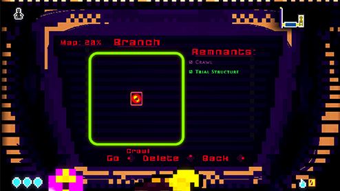 Using the ability acquired from that stage, you can use your new power to generate the same stage with different input items - creating a similar world with a different progression and design, and allowing you to unlock different meta items: