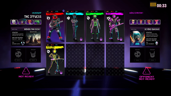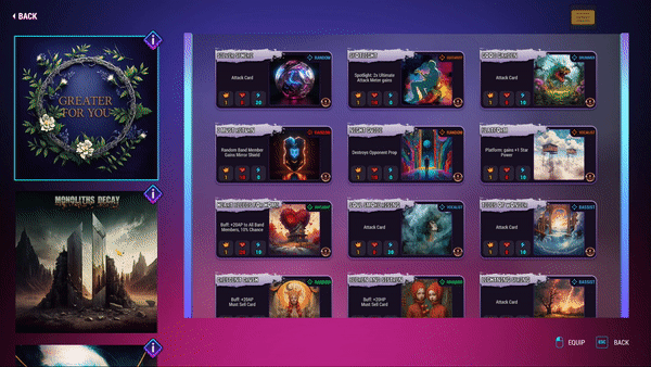 Not only do songs provide the music your band performs, but each original song contains 50 abilities that are randomly dealt to you when battling. Even if your opponent performs the same song, yours will be unique based on the abilities you’ve equipped and the order in which your band members perform on stage.