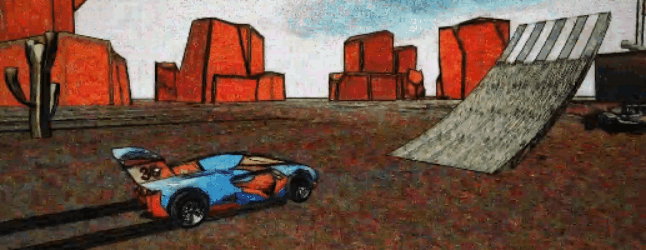 Car stunts game made by you as a kid in your imagination. Drawn and colored. And unfair.