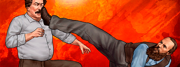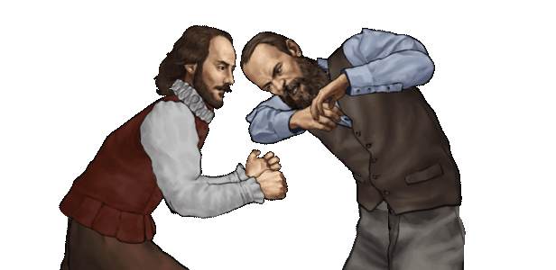 We got Rollback! The greatest writers of all time are fighting each other in the arenas that were inspired by their work. Each character can summon his own "magic" arena where he becomes the boss of the level for a short amount of time. Each character can be knocked out with one hit in standing in "danger" zone. Once the "magic" arena is summoned by one of the 15 combatants - the fighting game becomes an arcade while the "boss" player is trying to defeat the opponent before the magic arena time runs out.
