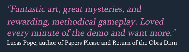 The Case of the Golden Idol is an investigation game featuring a unique drag-and-drop mechanic to truly test your ability to piece together clues and reconstruct events of mysterious deaths in the past.