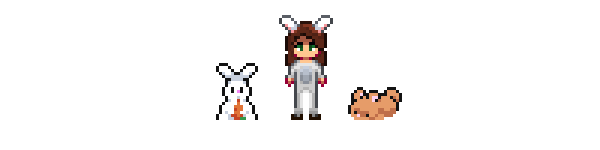 Bunny outfit for the player. All pieces of the outfit (bunny ears, top, and pants) can be worn separately to mix and match with other outfit combinations.
