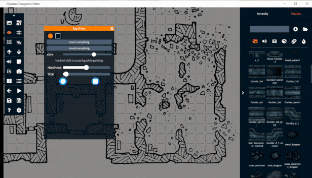 Dynamic Dungeons Editor is a local tabletop tool that was developed for game masters who use a TV or projector to map different premade backgrounds, videos, and images. Animations and particle effects, tokens, and audio files can be used to immerse your players. It's a player, not a 3d map-building software. Both the demo and the full version contain only a few simple battle grids, so you will need the videos or static battle maps of Dynamic Dungeons or other creators. This software is in constant development, future updates will be free.