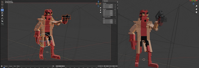 In-built Voxel editor lets you modify the character to get a look you desire and then seamlessly switch back and forth