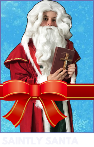 Saintly Santa. With his Bible and Baby Jesus stockings, Saintly Santa wants the holidays to be HOLY days! He's having a bit of an identity crisis in his new surroundings. Is he the answer to your prayers?
