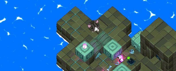 Kitten Jone enters a mysterious castle looking for artifacts, solving Sokoban-style puzzles and keep away from the dungeon traps. Can you help the Kitten Jone in this adventure?