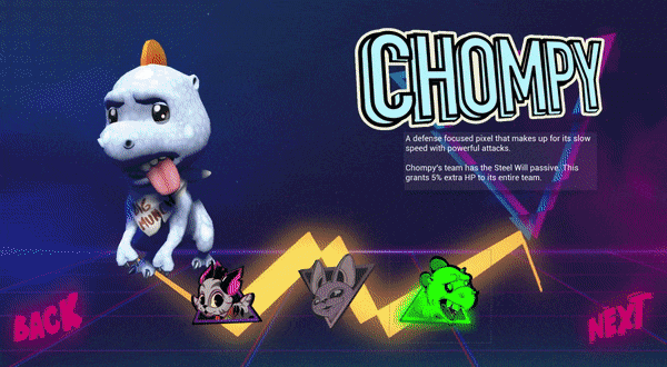 Experience fighting with or against a wide variety of different Pixels, each with their own moves, strengths, and weaknesses. With expressive personalities and powerful moves, we hope you'll find your favorite!
