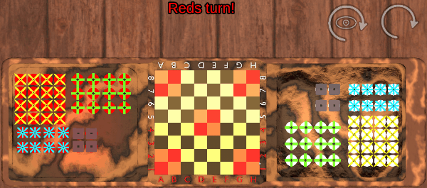 From there, the main phase of the game begins, where both players try to capture eachothers pieces. During this main phase, players can place new pieces anywhere on their side of the board. Players can also stack pieces on top of eachother to grant their pieces additional range.