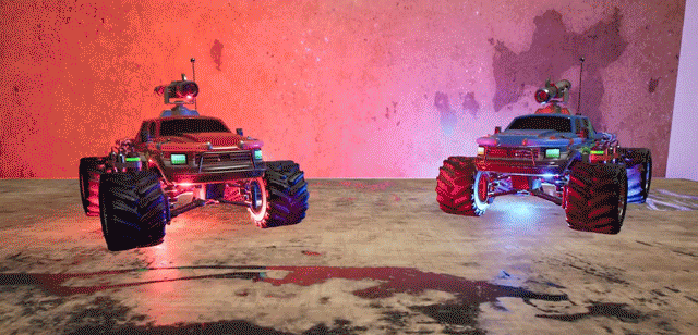 Make over the top RC-Car commericials of the 90's a reality, in electrifying, movement intensive team based battles from a miniature perspective. Control modified RC-Cars, Helicopters and Aircraft, each equipped with unique DIY-weaponary and -gadgets, in highly immersive, detailed environments.