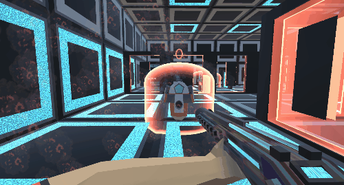 BounceShot is a Action Puzzle FPS where all shots must be bounced. Position your body and weapon to fire projectiles that bounce around corners, hit switches on ceilings, or strike unsuspecting droids. Race to each level's exit portal in order to get the best time. Scores reward speed and style!