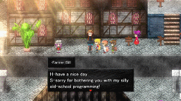 Characters and Enemies move around the battle field to attack. The camera follows them, adding more dynamic action to a turn-based battle system. In addition to some... very quirky skill descriptions, there are many nifty items and equipment to take your party from "just ok" to "godmode" if you're clever. As the story unfolds, various characters will unlock