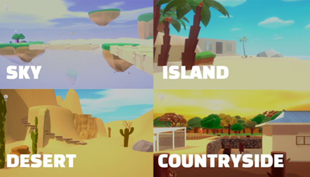 - Explore maps with different atmospheres (Island, Sky, Desert, Countryside, etc.). (The demo version only introduces the Sky map.)
