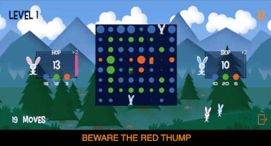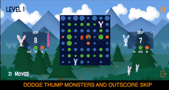 Deceptively tricky, turn-based strategy game. You might beat Skip on his own, but are you smart enough to win when the Thump monsters invade? Red, yellow, and green Thump monsters block your moves and "thump" you. What at first appears to be a simple game becomes way more challenging.
