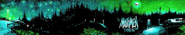 A short taster of Mothmen 1966, a 'Pixel Pulp' - a visual novel featuring a fusion of exceptional writing and stunning illustration, inspired by mid-20th century pulp fiction and 80s home computer graphics - set amongst the strange occurrences of the Leonid meteor shower of 1966.
