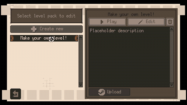 Challenge yourself (and others) and explore your creative side of Grapplevania’s with the endless designs and possibilities! You can also upload your custom levels using Steam Workshop and play levels created by other players.