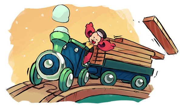 Explore the toy train and start laying tracks. As soon as the train passes one of the wooden storage units, planks will automatically be added to your pile. Thus increase your supply of planks and expand your building possibilities.