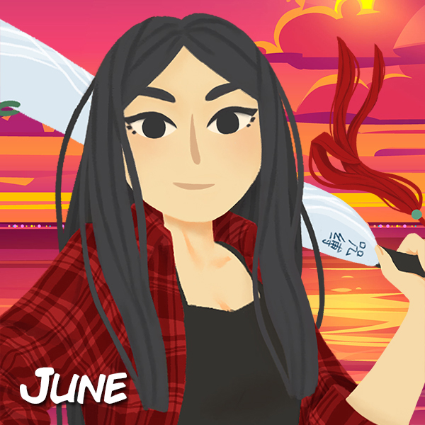 This is June, after inheriting a cursed sword that talks non-stop from her father, she mostly likes to meditate and try to find peace where she can.