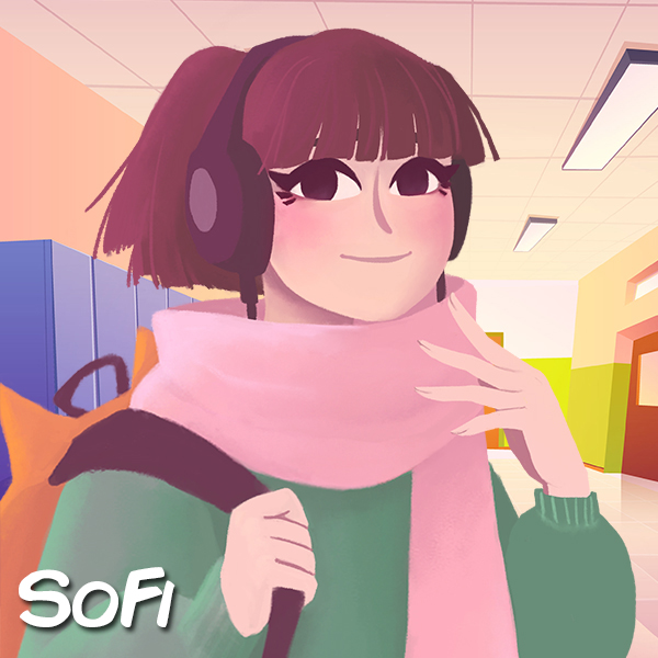 This is SoFi, a half-siren still trying to control her powers, and wears big headphones so that when she's singing along to something she doesn't put herself to sleep.