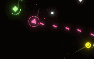4 Players have their own color. The enemies and bullets with a certain color can only be destroyed and absorbed by players of their color.