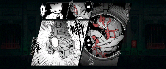 Hand-drawn Environments/Animations and Manga: Nine Sols is filled with meticulous hand-crafted, anime style landscapes, sprite based hand-drawn animations, blending with Japanese manga inspired cutscenes.