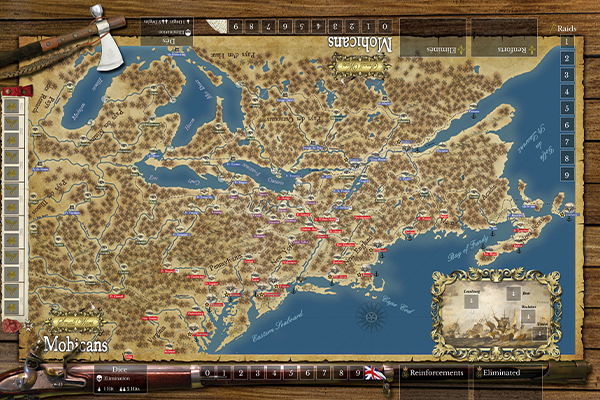 Both sides seek to curry favour with the powerful but neutral Iroquois Confederacy, as an alliance with them is an enormous strategic advantage. With each major victory on the battlefield, one of the six tribes of the Iroquois will offer its support to the winning side. Get the support of all six tribes, and the Iroquois will join the fight.