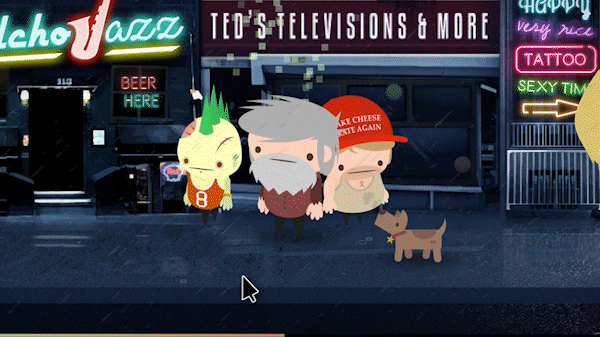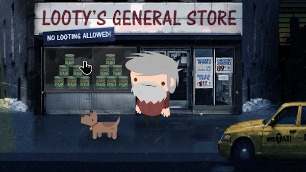 It's a side-scrolling point-and-click game with optional basic keyboard controls. You can click an NPC to get them to follow you, and keep them out of harm's way. You can enter different buildings and rooms, and pick up items. Items can be bashed over a zombie's head, or dropped in front of a door to create a barricade.