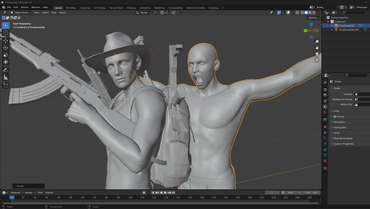 You can export your 3D posed characters into your favorite 3D modeling and sculpting programs like Blender, Zbrush, Nomad Sculpt, and more!