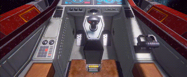 Look around and interact directly with screens, gauges, and other equipment of the spaceship cockpit.
