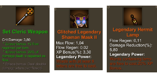 Flow will always be shown in the corresponding section of your info box. Simply mouse over them to remind yourself of their names. Anytime a legendary or a set item triggers it's effect a short animation will be shown, allowing you to decide if they are useful enough for you or perhaps it's time to change up your gear.