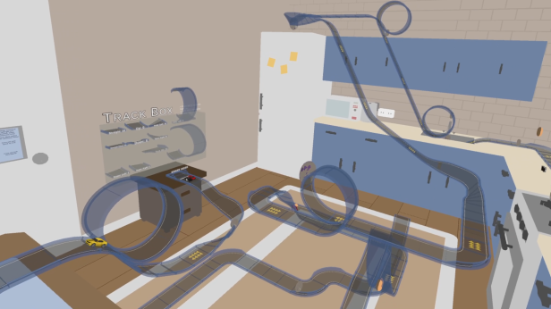 Stunt track builder is a physic-simulation game about building giant stunt tracks in your home and collecting all the super looking toy cars. Build the stunt track of your dream, all in VR.