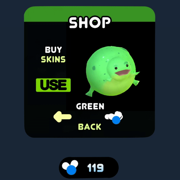 The in game currency "Flies" can be collected throughout the game and can be spent in the shop to buy cosmetic hats and skins!