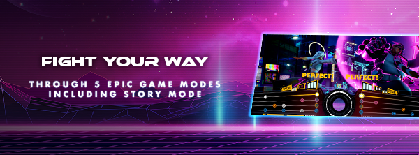 God of Rock blends rhythm-based gameplay with fighting game mechanics in tense 1v1 matches. Choose from a dozen unique fighters, each with their own design, mechanics, and harmonic attacks. Soften up your opponent by executing normal moves and building meter by hitting notes to the beat of the song, then spend your meter to unleash EX and special moves do damage and add complexity to their tracks. Finally, finish them off with a devastating Super attack! As the battle progresses, the music track will continue to grow in complexity and difficulty until only one fighter is left standing!