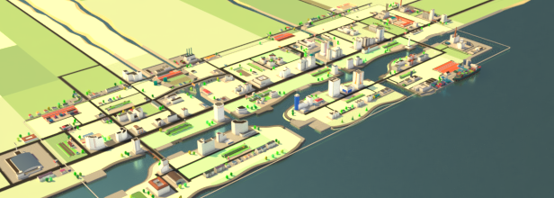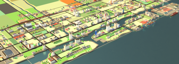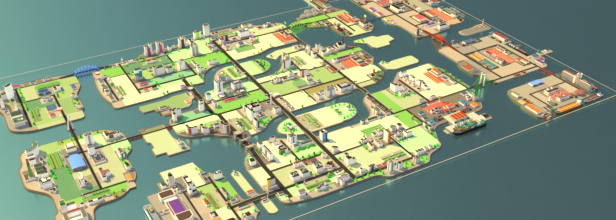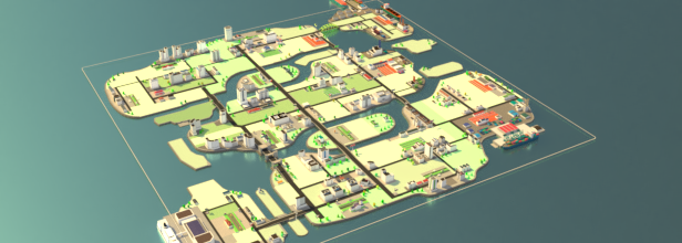 Five large islands appeared on the map. Residential areas with four passenger stations are located on two islands. Cargo stations and different port facilities are located on the other three islands. The area of the city increased by 65%.
