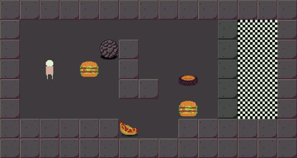 Solve puzzles by eating foodstuff and pushing boulders. Can you figure out how to escape?
