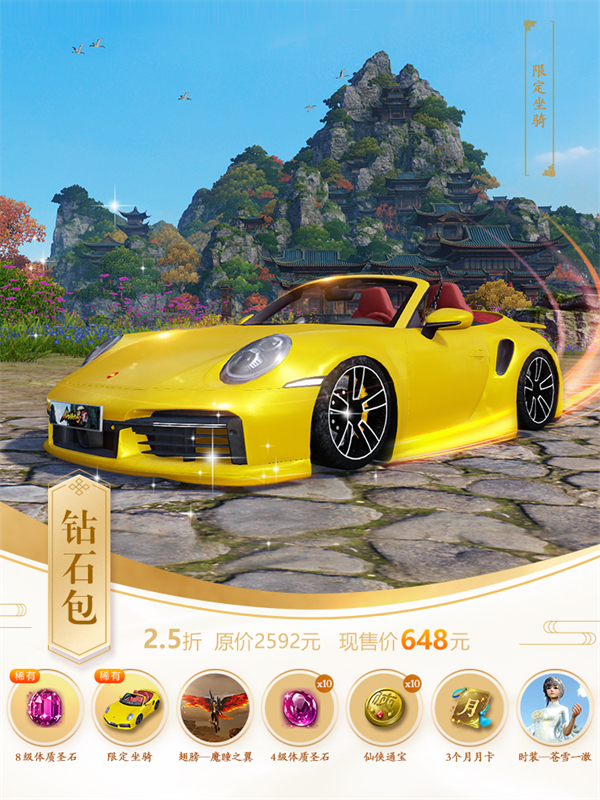 《仙侠世界2—钻石版》包含以下物品:8级体质圣石、限定坐骑,翅膀—魔瞳之翼、4级体质圣石*8,仙侠通宝*10、3个月月卡、时装—苍雪一澈