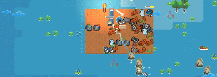 Collect supplies by rafting: collect wood, seagrass, coral, ore, and so on.