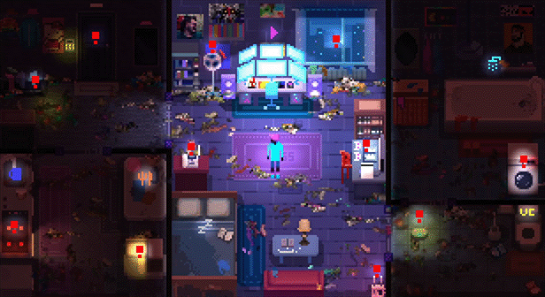 The atmosphere of a midnight apartment and solitude, complemented by lighting and soundtrack.