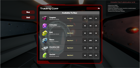 With the resources you collect you can research and expand your spaceship. In more detail, you will be able to unlock a Fabricator Module, with which you will craft complex items, from the raw resources that you collect. Additionally, you will unlock automatic tools to help you mine and fabricate items fast and idly. You will also get various improvements and upgrades for your ship, as well as a Trading Console which will allow you to trade with the local population of each planet you visit!