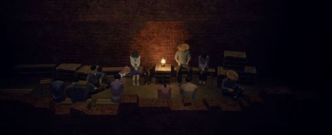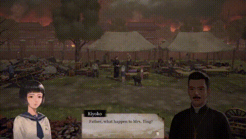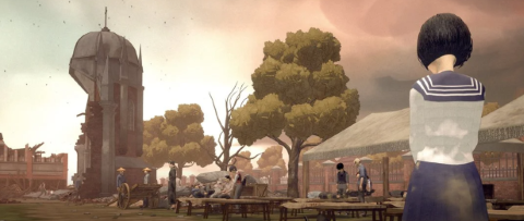 A lot of people suffer from the air bombardment. Survivors have lost their homes. However, in the war-ravaged Taihoku, the silhouette of the young girl, is still visible in between streets and houses.