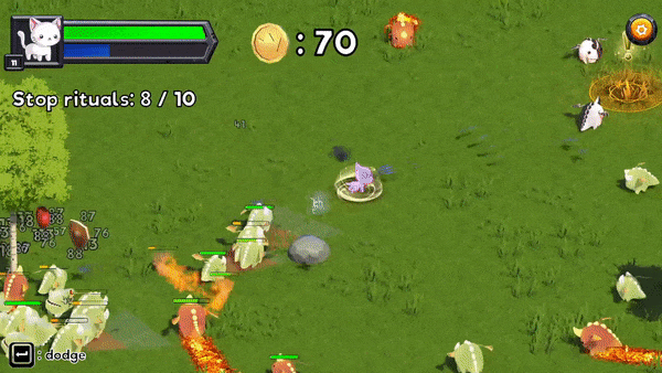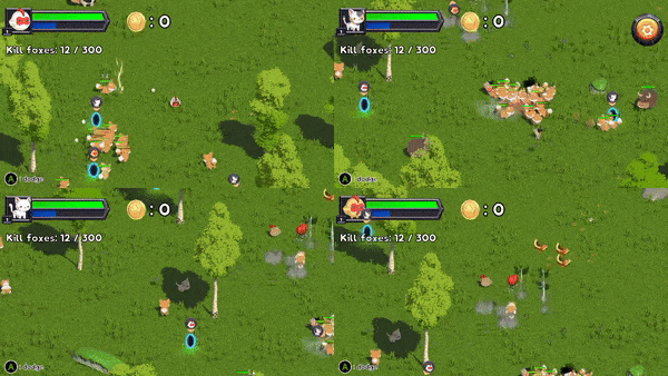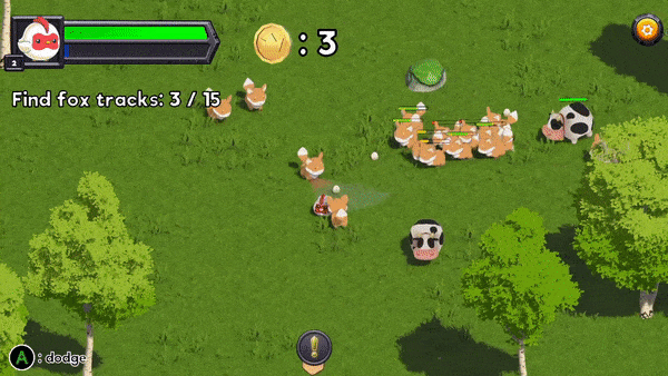 Since our playtest, we have implemented the campaign / story-mode for Feisty Fauna. Now, you can experience Peppermint's story, as she rescues her chicks who have been kidnapped by foxes.