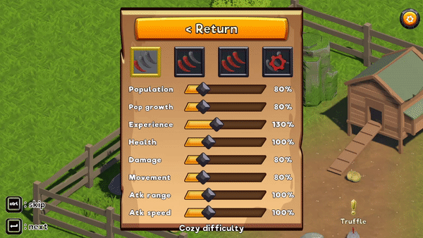 We've balanced the difficulty of the campaign levels. Our general philosophy for difficulty levels is: for the Spicy (Medium) difficulty, new players should be able to complete it without dying, but it may feel a little challenging at times. For veteran players of the genre, Feisty (Hard) difficulty should be more your style! The Cozy (Easy) difficulty is for players who seldom/never play similar games, and would like to enjoy the game without worrying (too much) about dying.